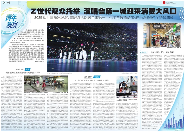 - Z世代观众托举 演唱会第一城迎来消费大风口 马年的大年初五,22岁的无锡女孩李蕴祎是在上海过的。她喜欢的说唱歌手Capper张砚拙在上海开演唱会,她和朋友两个人约了提前一天来,“初五看烟花,初六白天吃饭看电影,晚上看‘盆儿’(‘粉丝’给张砚
