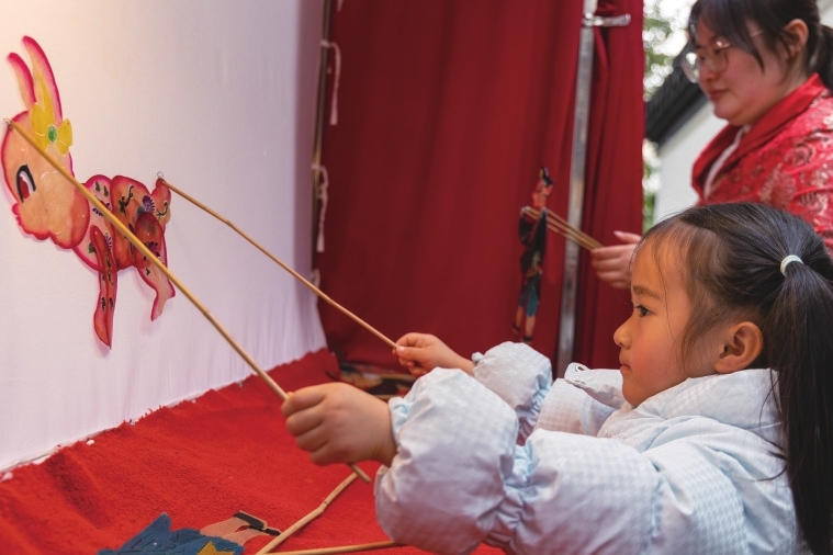 大团镇文化服务中心开展的非遗元宵喜乐会活动现场,红灯笼下灯谜妙趣横生,最具本地特色的酒酿元宵摊位前排起了长队。非遗传承人现场展示古法技艺,软糯的元宵配上醇香的酒酿,让市民在舌尖上品味传统。参与者完成体验后,还能在纪念卡片上盖上朱雀印章,为团圆滋味增添一份祥瑞的寓意。“我是带着孩子来的,让他猜灯谜、做花灯,还能近距离看看锣鼓书、竹编是怎么一回事。”带着孩子前来参加活动的居民告诉记者,“这种体验比单纯看书本生动多了,感觉传统文化一下子‘活’了起来,孩子也问个不停,兴趣很大。”活动现场设立的“非遗课堂”通过互动问答,将锣鼓书、龙潭竹篮、灶台砌筑等非遗项目背后的智慧娓娓道来,让文化传承在潜移默化中进行。