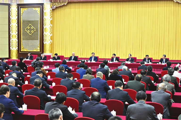 中共中央政治局常委、全国政协主席王沪宁,中共中央政治局常委、中央办公厅主任蔡奇参加看望和讨论。