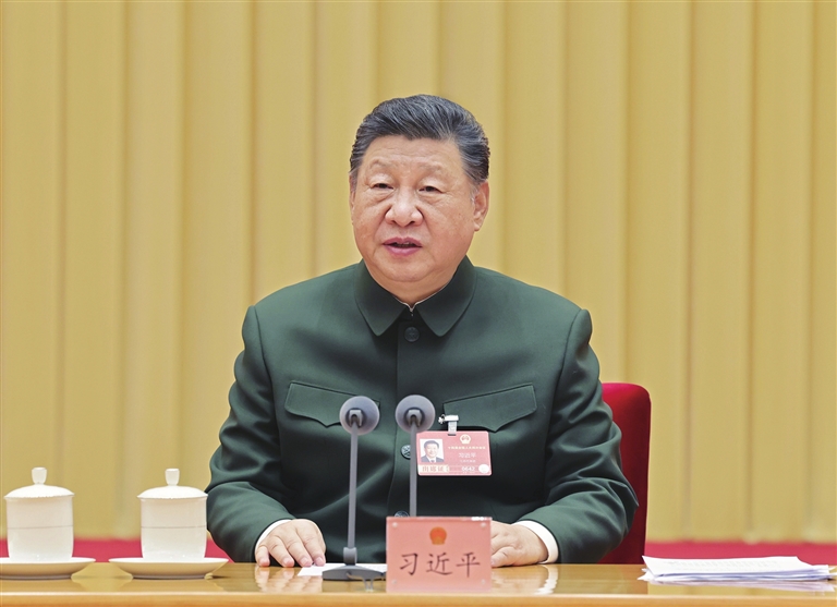 中共中央总书记、国家主席、中央军委主席习近平7日下午在出席十四届全国人大四次会议解放军和武警部队代表团全体会议时强调,“十五五”时期要如期实现建军一百年奋斗目标、高质量推进国防和军队现代化,必须坚持好、运用好、发展好政治建军这个重要法宝,毫不动摇坚持和加强党对军队绝对领导,充分发挥政治建军特有优势,凝心聚力推动国防和军队现代化行稳致远。