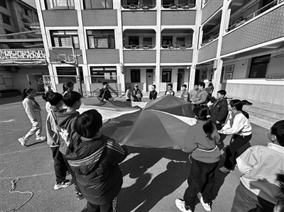 各学校主动“找”时间、“造”空间,让学生自编游戏、自主创编,碎片课间成为“欢乐赛道”。2025年初,董家渡路第二小学在全市率先试点,将10分钟课间延长至15分钟。这个新学期,学校已迎来“DE快乐嘉年华”的4.0版本,在课间15分钟的基础上迭代升级,从破解课间痛点,到丰富课间体验,再到以跨学科项目化学习让学生自主共创课间课程。上师大附属卢湾实验小学开展“我的运动我做主,欢乐课间时光”项目化主题活动,引导每一名孩子投入课间活动中,确保每天2小时的校内综合体育活动时间。