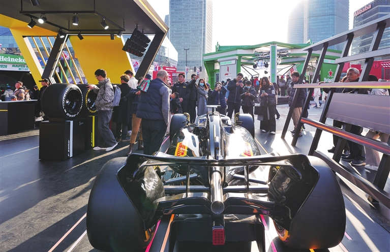 步入现场,记者注意到,不少车迷的手里都拿着一本“超级驾照”。原来,这是一本以中国首位F1车手周冠宇Q版形象为核心的集章本,以“一本‘驾照’,玩转上海”的设计理念,串联起四大会场及全市10家优质商圈与场馆。活动期间,持“超级驾照”的市民游客,不仅能完成特色打卡任务,更能畅享全市22个商圈提供的餐饮、零售、文娱等150余项福利优惠。
