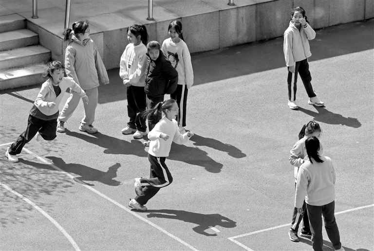 3月9日上午11点05分,随着下课铃响起,黄浦区卢湾一中心小学五年级(7)班的教室门被拉开,从教室里走出的周同学拿着一个塑胶小毛球和小伙伴在走廊上玩了起来。隔壁四年级(7)班的走廊上,同学们在高兴地玩着“跳房子”,整个楼层都洋溢着孩子们的欢笑声。昨日起,黄浦区所有小学正式将原本10分钟的课间活动时间延长至15分钟,率先实施“课间15分钟”。据市教委透露,本市已有序推进“课间15分钟”,自本学期起到2026学年秋季学期,全市高中、初中、小学的课间时长逐步有序调整到15分钟。