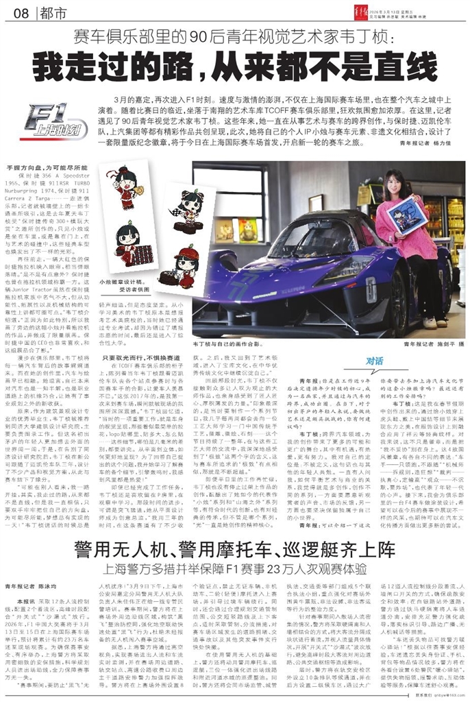 - 警用无人机、警用摩托车、巡逻艇齐上阵 青年报记者 陈泳均 本报讯 采取12条人流控制线,配置2个蓄流区,高峰时段配合“开关式”“沙漏式”放行。2026年,F1中国大奖赛将于3月13日至15日在上海国际赛车场举行,预计将累计有约23
