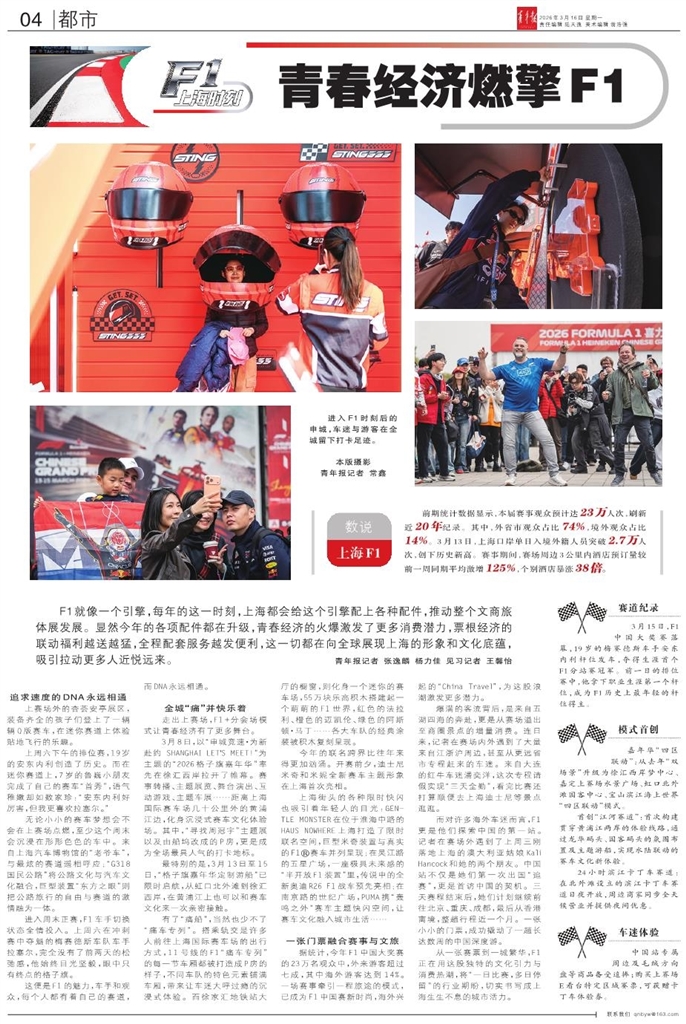 数说上海F1 前期统计数据显示,本届赛事观众预计达23万人次,刷新近20年纪录。其中,外省市观众占比74%,境外观众占比14%。3月13日,上海口岸单日入境外籍人员突破2.7万人次,创下历史新