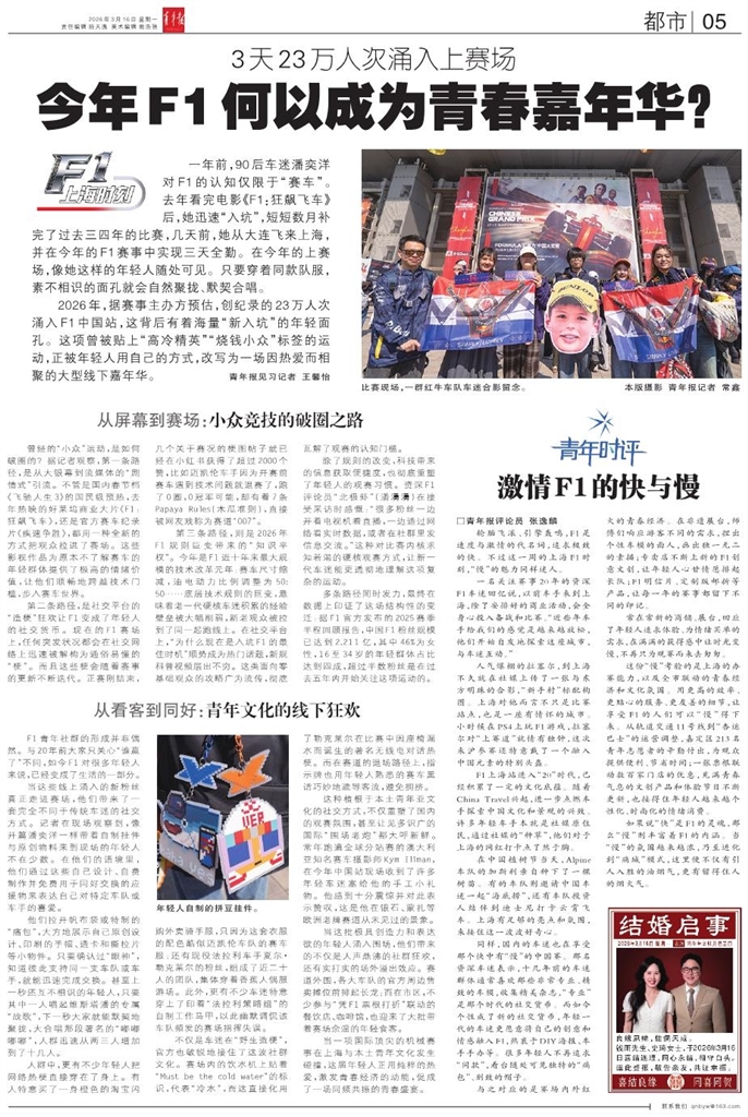 一年前,90后车迷潘奕洋对F1的认知仅限于“赛车”。去年看完电影《F1:狂飙飞车》后,她迅速“入坑”,短短数月补完了过去三四年的比赛,几天前,她从大连飞来上海,并在今年的F1赛事中实现三天全勤。在