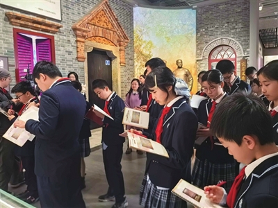 当天,“树德课堂·黄浦区红色周一大思政课”初中版首课在中共一大纪念馆开展,卢湾中学的学生在馆内沉浸式地上了艺术、历史、道德与法治、语文等课程。此次初中版首课,是“树德课堂·红色周一大思政课”品牌的常态化落地。自2025年项目启动以来,黄浦区教育局联合中共一大纪念馆、区域相关部门及中小学校,依据上海“大思政课”建设综合改革试验区实施方案,将每周一固定为沉浸式教学日,让中小学生在党的诞生地上课,全面升级“综合育人体系”。