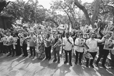 与马杜罗夫妇1月5日首次出庭时类似,法院外当天聚集不少要求释放马杜罗夫妇的民众。