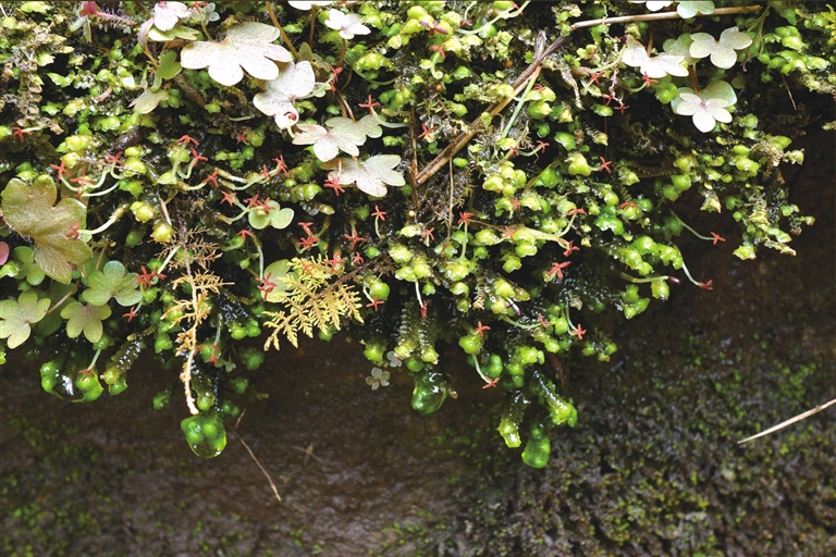 收获就是这样来的。迄今为止,张力已经命名了十几个苔藓新物种,如澳门凤尾藓、钝叶孔雀藓、墨脱异扭叶藓……每一次命名都要经过严谨又烦琐的过程。在野外见到陌生苔藓,先小心翼翼地采集标本,带回实验室后用显微镜反复观察它的形态、细胞结构,再和已知物种比对,从解剖学到形态学,一点点寻找差异。只有确认这是前人从未发现过的物种,才会写成论文发表,为它赋予专属名字。张力曾拍下世界上第一张东亚合叶苔的孢子体照片,这张照片,成了苔藓研究领域的珍贵资料。