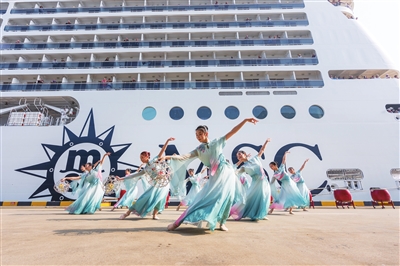 三月的最后一个周末,上海吴淞口国际邮轮港大船云集、宾客盈门,8000名外籍游客先后入境,港口迎来运营高峰。3月28日,德国途易邮轮“迈希夫6”号到访吴淞口,皇家加勒比游轮“海洋光谱”号同日靠泊,两艘邮轮共同带来约5900名外籍游客入境,刷新上海邮轮口岸运营以来单日入境外籍游客人数历史纪录。3月29日,MSC地中海邮轮“华丽”号携132天环球航线首次抵沪,与驻留的“迈希夫6”号、国产大邮轮“爱达·魔都号”实现今年首次三船同靠,“环球远洋航线+国际精品航线+母港运营航线”的多元格局,彰显了吴淞口作为国际邮轮枢纽港的核心地位,为打造中国邮轮入境旅游第一站再添新彩。