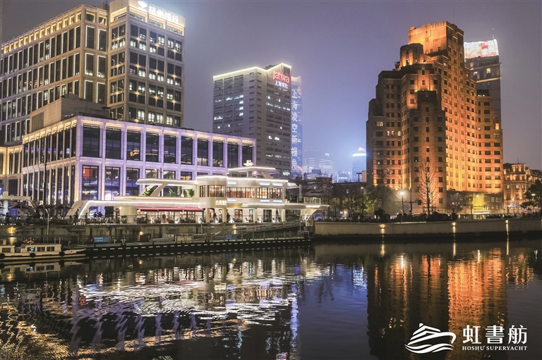 昨晚,一艘名为“虹书舫”的“文化大船”在苏州河畔乍浦路桥与外白渡桥之间“亮灯”。由虹口区文旅局、北外滩集团与大隐书局携手打造的这艘“大船”,不是一家传统的实体书店,而是以超级邮轮为核心创意,融合世界名著、海派文创、虹口礼物、上海之印、外滩乐集、甲板市集、光桥美食及“星耀上海——上海名人的上海足迹”等八大业态的融合创新之地。