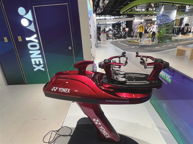 在尤尼克斯(YONEX)专柜,店员曹金芬向记者简要讲解了球拍定制的核心逻辑:“现在年轻人定制球拍,最关键的参数就是磅数。新手承受能力弱,多选18~22磅,弹力足、易操控;技术成熟后,为了追求进攻性与精准控球,纷纷转向28~29磅的高磅数。”