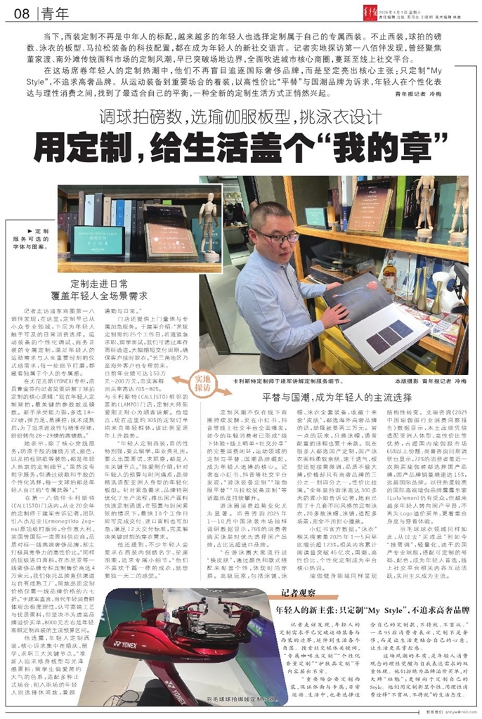 当下,西装定制不再是中年人的标配,越来越多的年轻人也选择定制属于自己的专属西装。不止西装,球拍的磅数、泳衣的板型、马拉松装备的科技配置,都在成为年轻人的新社交语言。记者实地探访第一八佰伴发现,曾经