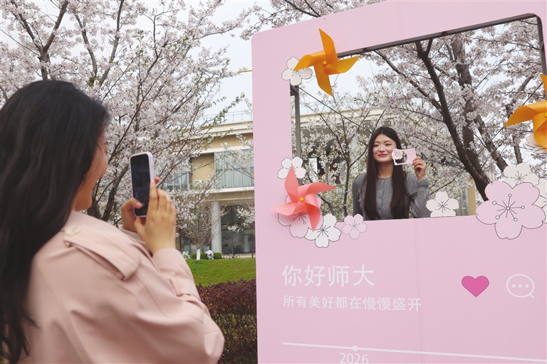 春风拂过,沪上高校的樱花次第绽放。从在樱花大道上静待一场“樱吹雪”到河畔边沉浸式感受春日雅集;从尝一口樱花果冻、樱花棒棒糖、带“粉刘海”的马年面包到绘制节气海报——这个春天,上海高校解锁了关于樱花的N种玩法。一树树的粉白樱花,装点春日,也点亮无数学子的青春记忆。