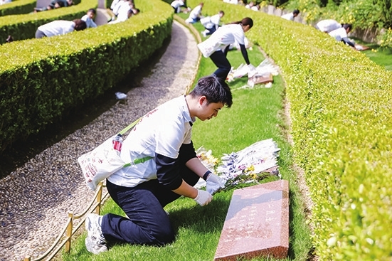 在庄重的仪式之外,青少年的心声同样令人动容。静安区教育学院附属学校的陈麒光,今年已是第二次参加龙华清明祭扫活动。面对记者,他语气沉稳:“我觉得这个活动意义非常重大,它可以让我们学习先烈的精神。一百多年前,无数先烈为我们今天的幸福生活抛头颅、洒热血,才换来如今的一切。”他顿了顿,接着说:“我们要传承红色基因,赓续红色血脉,在实现中国梦的道路上不断前行。”连续两年的参与,让这名少年对“纪念”二字有了更深的理解。