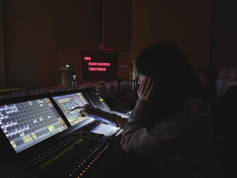 灯光师耿仟一同样科班出身于上海戏剧学院,硕士毕业至今不过三年,却奔波于各地项目中,比如近阶段正忙着辗转于三个话剧剧组之间。“对于灯光师来说,最重要的工作是‘进剧场后’,将设计想法全部在现场落地。”每当观众主动提出灯光设计想法和创作思路时,她都会深受感动,而一旦走出剧场进入空档期,焦虑难免袭来。加入团总支后,她逐渐平衡了工作的两头落差。