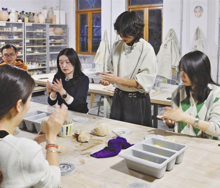 授课老师丁心如前年刚从上海工艺美术职业学院陶瓷设计与工艺专业毕业,虽然年纪轻轻,但经验丰富。常驻马门村的她,不是在创作就是在授课。她告诉记者,为了向学员更全面地呈现陶艺的魅力,自己光是教案就修改了好几稿。“平日里,我们这里也会有各种各样服务于游客的体验活动,但是因为时间有限,所以教得相对比较‘浅’。青年夜校的不同之处在于,更加系统、更加细致。我希望通过这十节课,不仅让大家学习到制作器物的技艺,更可以完成一场与泥土对话的奇妙旅程。”