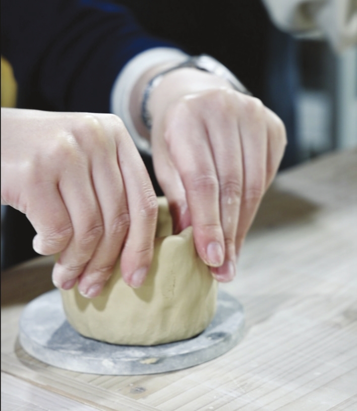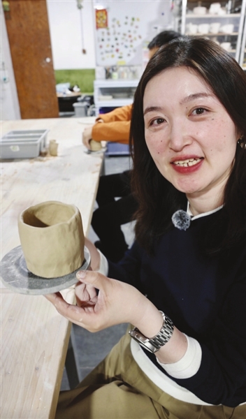 这节课的内容是手捏杯子。李陶陶是第一个来到教室的学员。她告诉记者,自己住在安亭镇,早早地就从家里出发了,“我来过一次马门村,一下子就被这里的艺术氛围所深深吸引,心想,要是有机会跟着这里的艺术家学习陶艺就好了。没想到,也就过了一个礼拜的时间,青年夜校的招生信息就出来了,我赶紧报了名。”