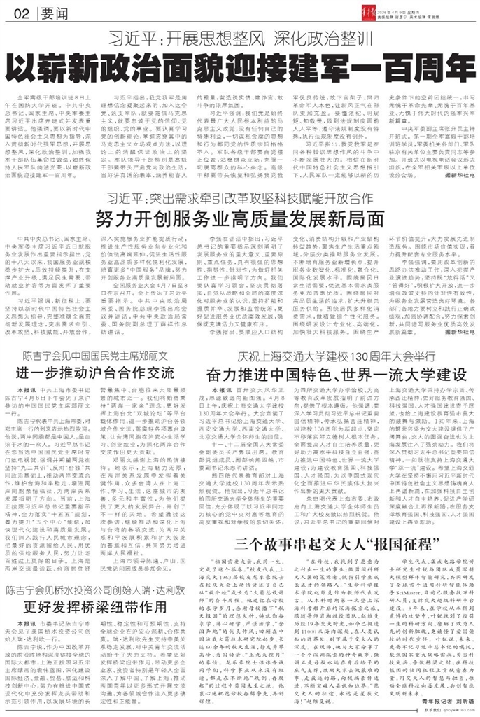 - 奋力推进中国特色、世界一流大学建设 本报讯 百卅交大风华正茂,思源致远向新图强。4月8日上午,庆祝上海交通大学建校130周年大会举行。大会宣读了习近平总书记给上海交通大学、西安交通大学、西南交通大学、北京交通大学全体师生的回信。