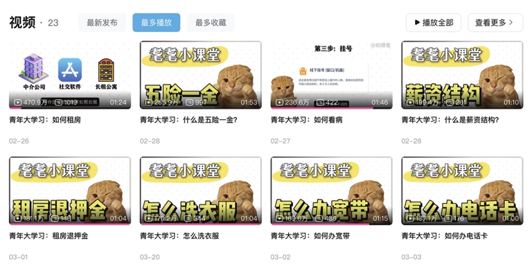 播放量高达161万的“怎么洗衣服”那一期视频里说,“深浅色衣服最好分开洗,混色衣服要配合吸色片防止串色”。这正是许多年轻人以为自己会,但详细了解后才发现有许多不曾注意的事项。而在一些更专业的“实习期和试用期”“租房退押金”的视频里,年轻观众更是你一言我一语地和网友分享经验,十分热闹。
