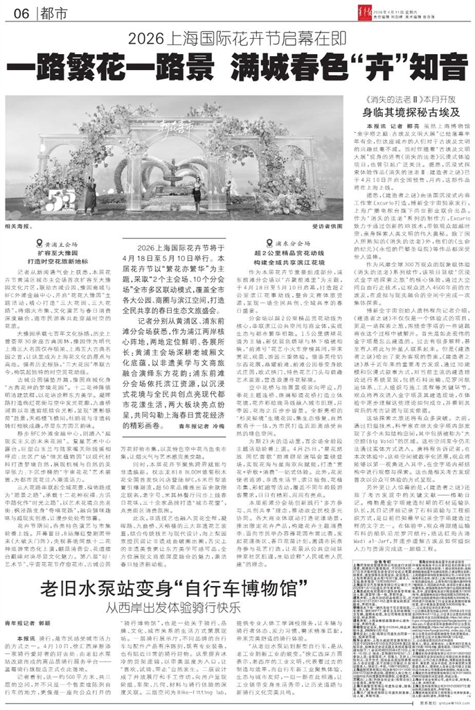 - 一路繁花一路景 满城春色“卉”知音 2026上海国际花卉节将于4月18日至5月10日举行。本届花卉节以“繁花亦繁华”为主题,采取“2个主会场、10个分会场”全市多区联动模式,覆盖全市各大公园、商圈与滨江空间,打造全民共享的春日生态文