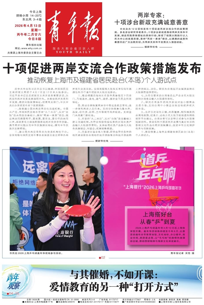 - 2026年4月13日 星期一 丙午年二月廿六 今日8版 青年报社出版 网址:www.why.com.cn 共青团上海市委员会主管主办