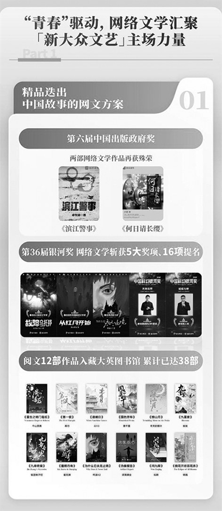 这是一场网络文学的“青春风暴”。当“新大众文艺”和青年结合起来的时候,爆发出来的“青春经济”的活力是相当惊人的。报告说,目前网络文学阅读市场规模达502.1亿元,同比增长16.6%。2025年网络文学IP改编市场规模爆发式增长至3676.1亿元,同比增长23.13%。大批来自各个领域的青年在网络文学创作中获得收益,又有大批各行各业的青年为这些优质网络内容埋单。“青春经济”在网络文学中一下子变得具体化了,其爆发力令人瞩目。