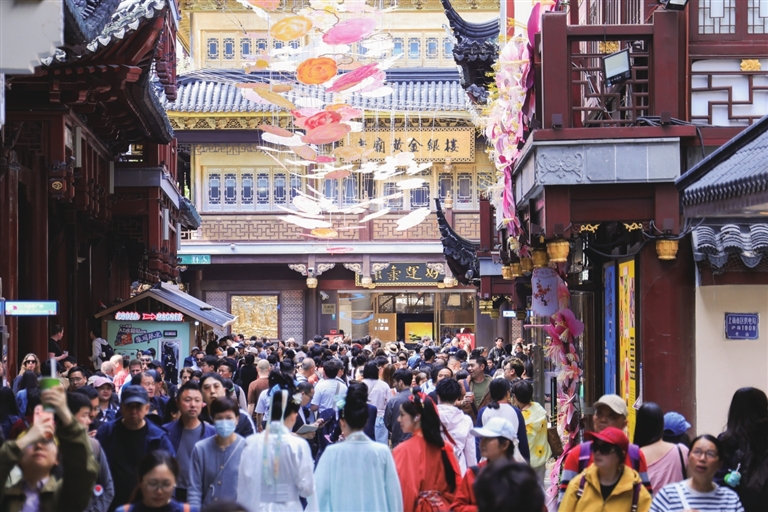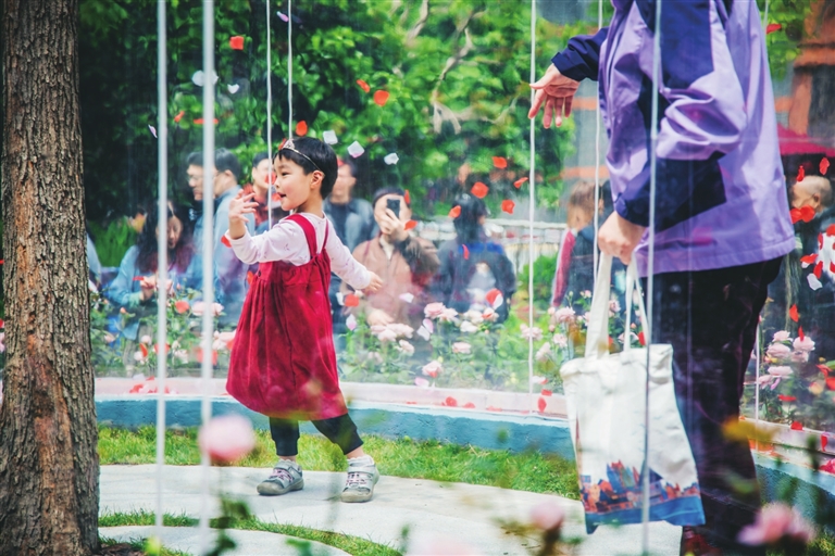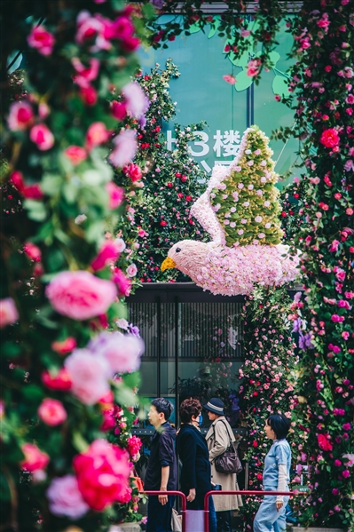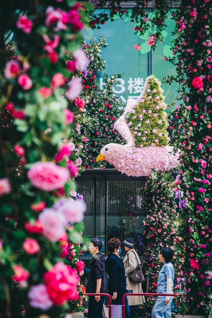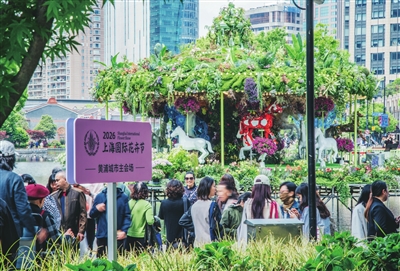黄浦新天地的林荫下,多彩尼龙线织就的“生命棱镜”折射出斑斓光影;豫园九曲桥畔,花神裙摆拂过剪纸荷花;古城公园的老香樟树下,“时间之门”的水影与树影交织,形成“古树之镜”;位于前滩的“鲜花动物城”,2公里花道旁挤满举着手机打卡的年轻人。4月18日,2026上海国际花卉节开幕首日,花花大豫园三大花园三条花路总客流超30万人次;晶耀前滩和前滩公园巷客流达33.69万,销售额同比去年花卉节分别提升83%和31%。当赏花经济遇上年轻人,这场全城花事,究竟靠什么把“泼天流量”变成了“真金白银”?青年报记者 冷梅