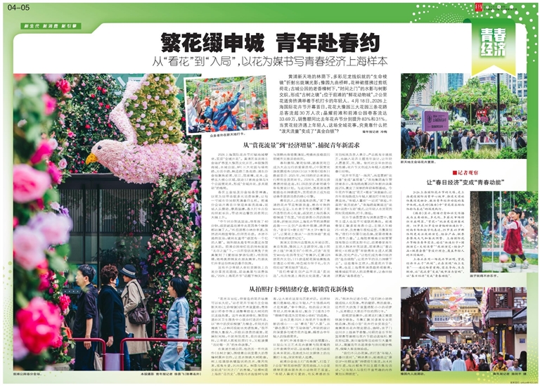 黄浦新天地的林荫下,多彩尼龙线织就的“生命棱镜”折射出斑斓光影;豫园九曲桥畔,花神裙摆拂过剪纸荷花;古城公园的老香樟树下,“时间之门”的水影与树影交织,形成“古树之镜”;位于前滩的“鲜花动物城”,