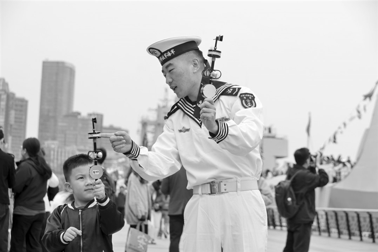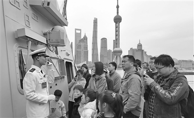本报讯 4月21日上午,以“上海·海上”为主题的舰艇开放活动在上海港国际客运中心码头再度启幕。中国人民解放军海军阜阳舰、千岛湖舰官兵以悬挂满灯满旗的海军最高礼仪,热情迎接市民登舰参观。