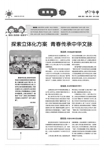品牌是城市软实力的重要表征。对一座大城来说,上海推动青少年传承中华文脉,极为看重的方式之一,就是持之以恒地打造品牌,这些品牌是增强优秀传统文化的凝聚力、向心力和让青少年产生文化归属感的重要基础。
