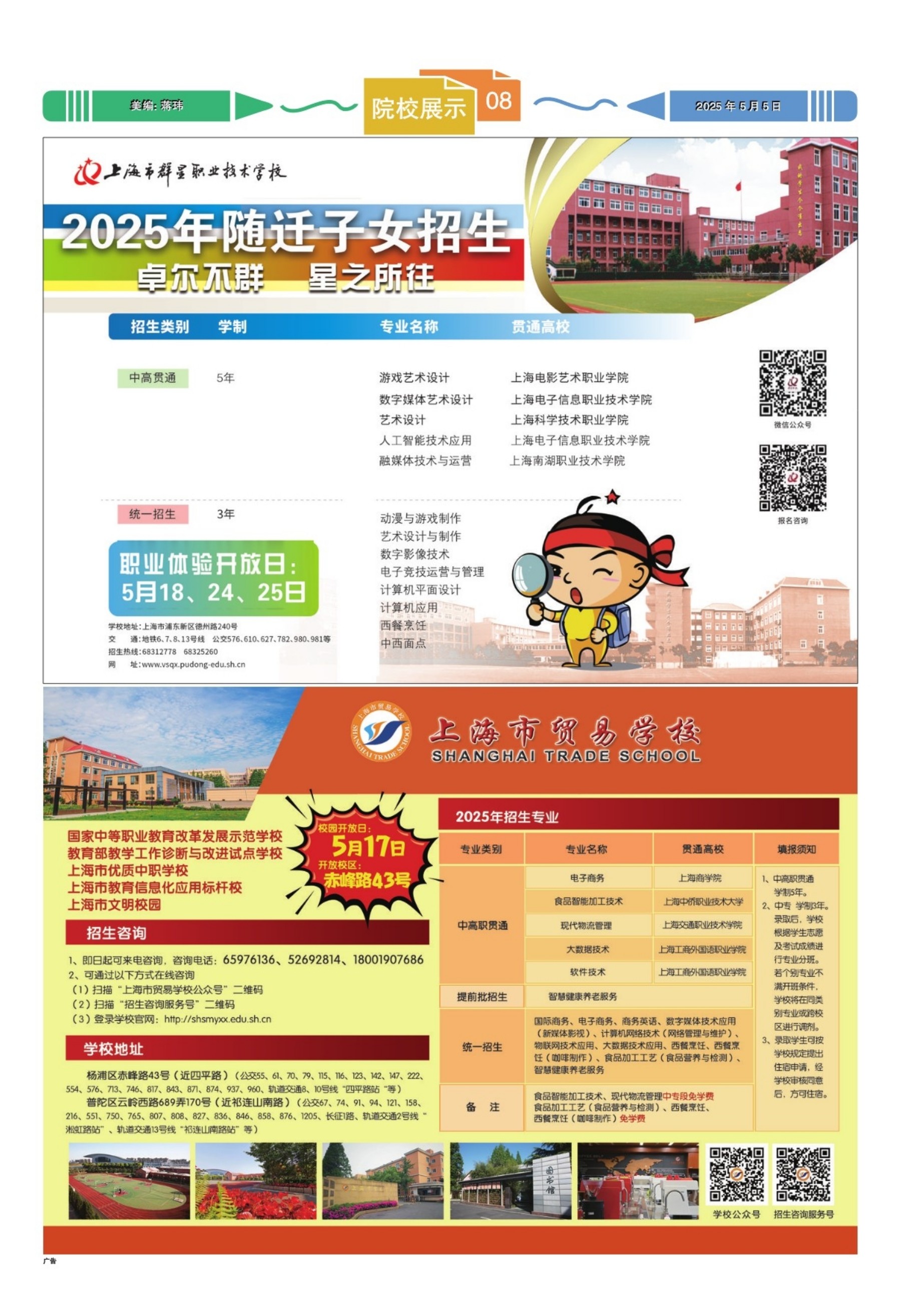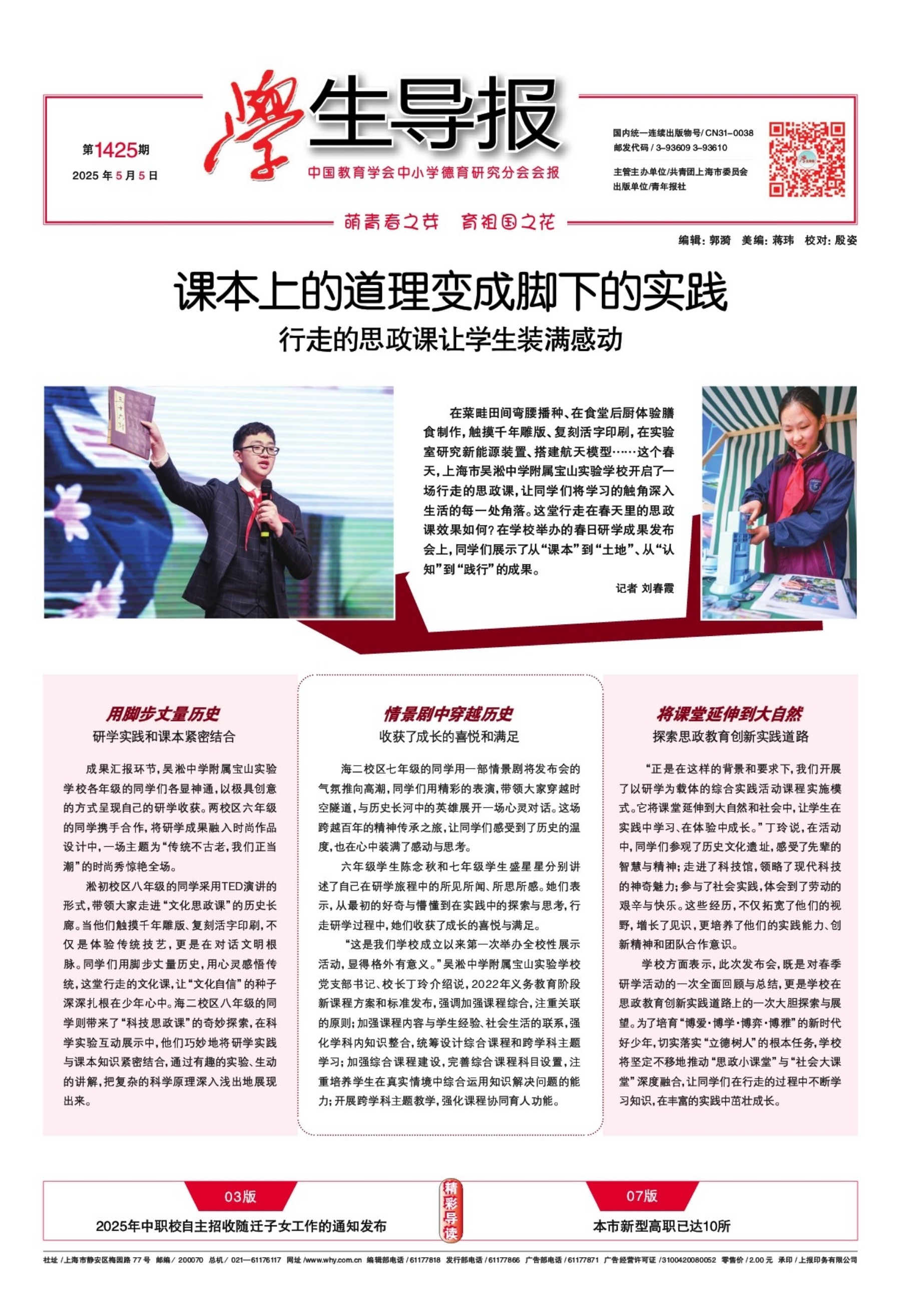 A01 学生导报 A02 校园 A03 政策 A04 专题 A05 院校展示 A06 升学 A07 升学 A08 院校展示 B01 东方少年 B02 校园 B03 德育园 B04 缤纷墙 B05 缤纷墙 B06 乐学园 B07 科技世界 B08 文化生活