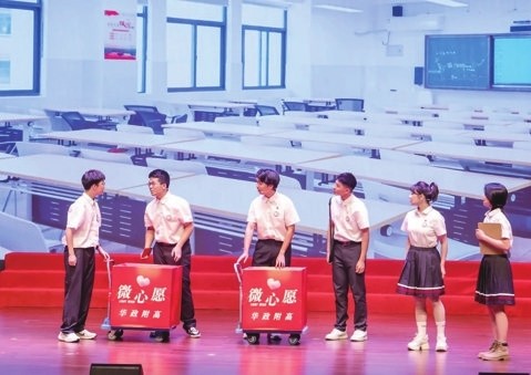 在展现红色研学和微心愿传递活动时,舞台上真实还原了教室场景,同学们积极响应捐赠的热情,以及与彝良县小学学生视频通话时双方真挚的情感交流,都让观众切实感受到了信仰的力量和爱心的传递。