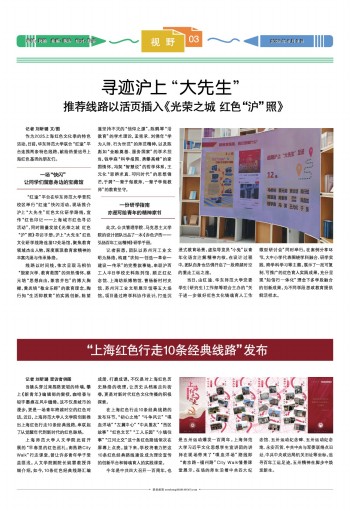 “红途”平台在华东师范大学普陀校区举行“红途”快闪活动,现场推介沪上“大先生”红色文化研学路线,宣传“红色印记——上海城市红色寻访活动”,同时限量发放《光荣之城 红色“沪”照》寻访手册。沪上“大先生”红色文化研学线路连接12处场馆,聚焦教育领域杰出人物,深度展现教育家精神的丰富内涵与传承脉络。