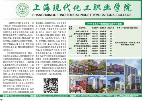 上海现代化工职业学院是一所工科为主,多科协调发展的上海市新型公办高等职业学校。学校以新时代中国特色社会主义思想为指导,全面贯彻党的教育方针,坚持“以人为本、德能并重、求实创新、精益卓越”的办学理念,构建多元治理办学机制,深化产教融合、校企合作,服务区域经济和社会发展,精准培育高素质技术技能人才。
