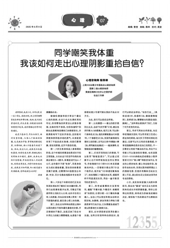 老师您好,我是小文,今年11岁,是一名小学生。前段时间,班上同学频繁拿我长胖这件事打趣。起初,我只当是普通玩笑,并未在意。但随着这类调侃慢慢多起来,我的情绪也变得不是很稳定。