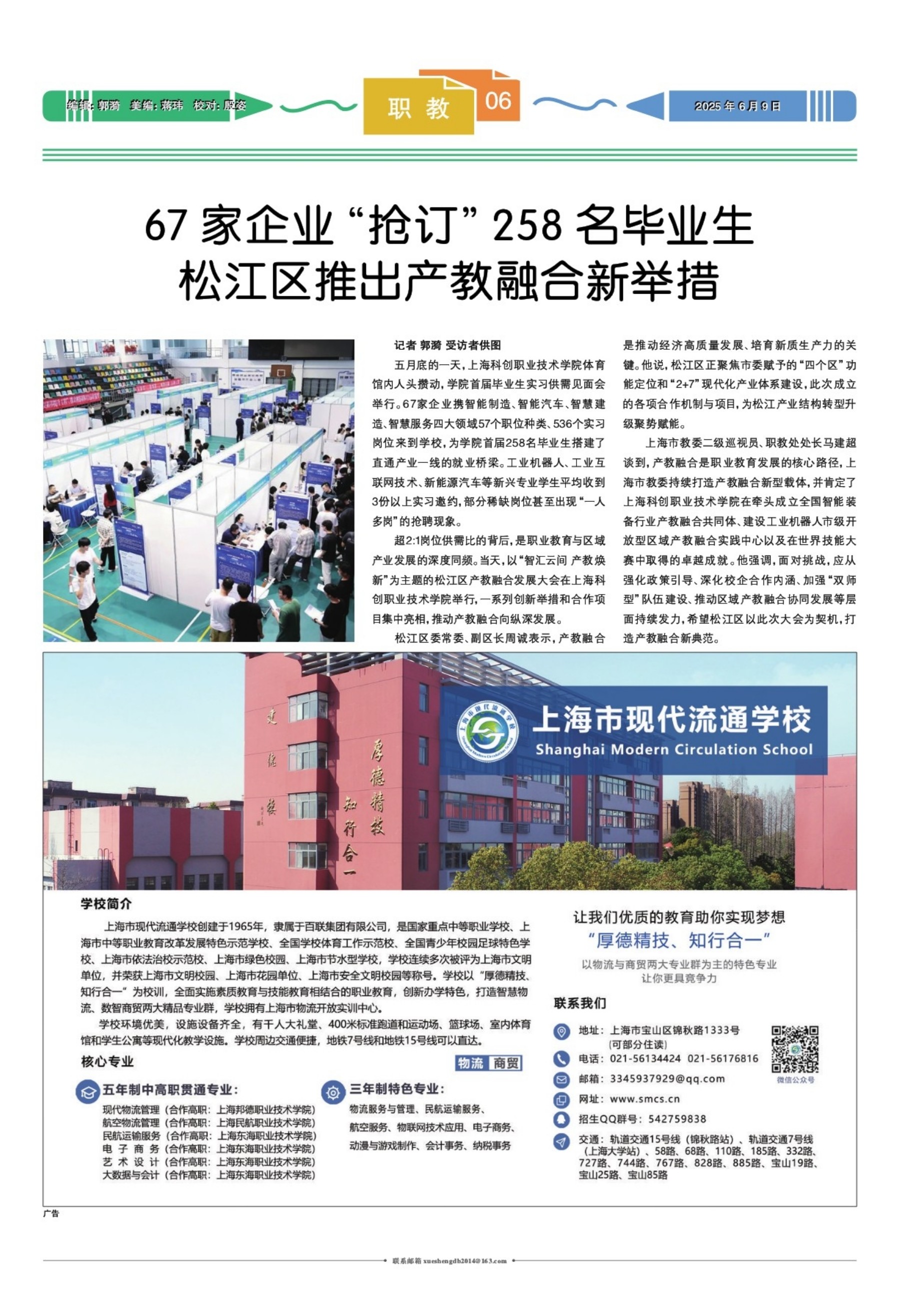 67家企业“抢订”258名毕业生 松江区推出产教融合新举措