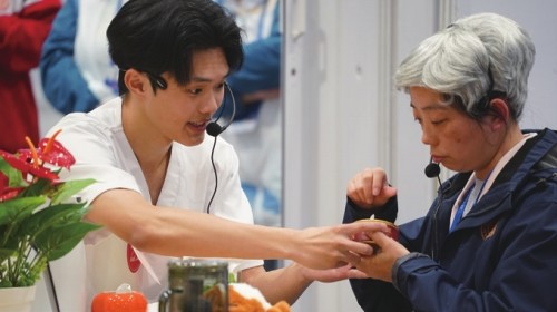 但运动员不服输的韧劲让他咬牙坚持:英语不好,就每晚逐帧分析训练视频,周末再花2小时跟外教练口语;沟通不够细致,就对着镜子反复练习神态与语气,还利用周末到医院、养老院与患者深度交流;操作不够熟练,就把每个动作都分解练习,每日数十次用消毒液洗手让双手和身体其他部位出现明显色差。