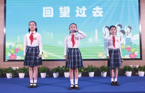 参与活动的少先队员、少先队辅导员及少先队工作者代表通过微视频队课、故事讲述、AI隔空对话等环节回望过去、畅想未来。