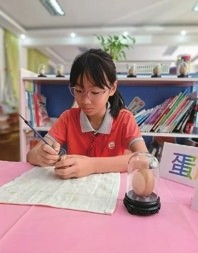学习“蛋雕”技艺的过程,带给我很多珍贵的收获。首先是培养了我的专注力。从最初在蛋壳上练写字时手抖得握不住笔,到如今能绘制图案;从学镂空时屏住呼吸,到练阴刻阳刻时手指酸得握不住刻刀,每一步都像在蛋壳上走钢丝。没有高度的专注力,可学不会哦!其次,是坚持不懈的精神。我用阴刻做梅花那阵子,可没少掉眼泪:有时刀尖刚碰到蛋壳,“啪”的一声就裂出蜘蛛网似的纹路;有时同桌的蛋壳突然碎了,我吓得手一抖,自己的梅花瓣也跟着缺了个角。刻坏的蛋壳装满了3个盒子,我才终于找到下刀的诀窍——手腕要像小吊车一样稳,眼睛要像放大镜一样尖。现在我的梅花终于“开”在蛋壳上啦!阳光一照,好像能闻到淡淡的梅香呢!