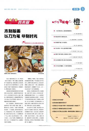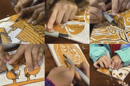 教版画的老师就是教我们美术的傅老师。她告诉我们,版画是中国的传统艺术,已经有数百年的历史,融合了雕刻、印刷和绘画技艺,承载着深厚的历史文化内涵。所以学习版画,也是从另一个角度体验中国历史的魅力。