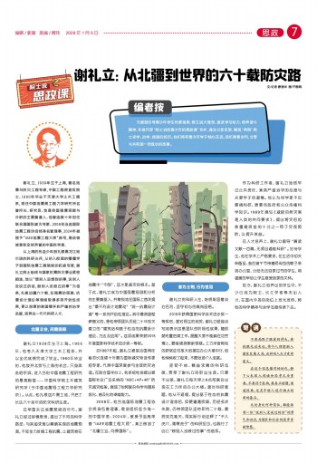 谢礼立,1939年生于上海,著名地震与防灾工程专家,中国工程院首批院士。1960年毕业于天津大学土木工程系,现任中国地震局工程力学研究所名誉所长、研究员。他是我国强震观测与分析的主要奠基人。他曾连续十年担任联合国国际减灾专家。2008年当选国际地震工程协会终身名誉理事,2024年被授予“IAEE地震工程大师”称号,是该领域享有全球声誉的中国科学家。