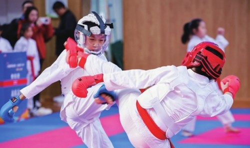民办阳浦小学体育顾问、中国空手道协会裁判委员会主任马俊婷介绍说,空手道讲究“始于礼、终于礼”的礼仪规范,追求“心技体合一”的身心修炼;既以“拳、腿、摔”全面的技法让孩子掌握自我保护的能力,更以“点到为止”的规则教会孩子尊重与包容、以“勇攀高峰”的晋级文化磨砺孩子的坚韧意志。