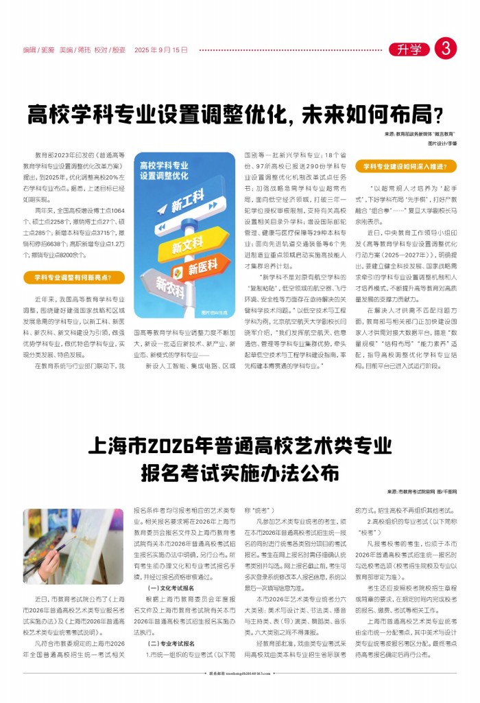 - 高校学科专业设置调整优化,未来如何布局? 来源:教育部政务新媒体“微言教育” 图片设计/李肇 教育部2023年印发的《普通高等教育学科专业设置调整优化改革方案》提出,到2025年,优化调整高校20%左右学科专业布