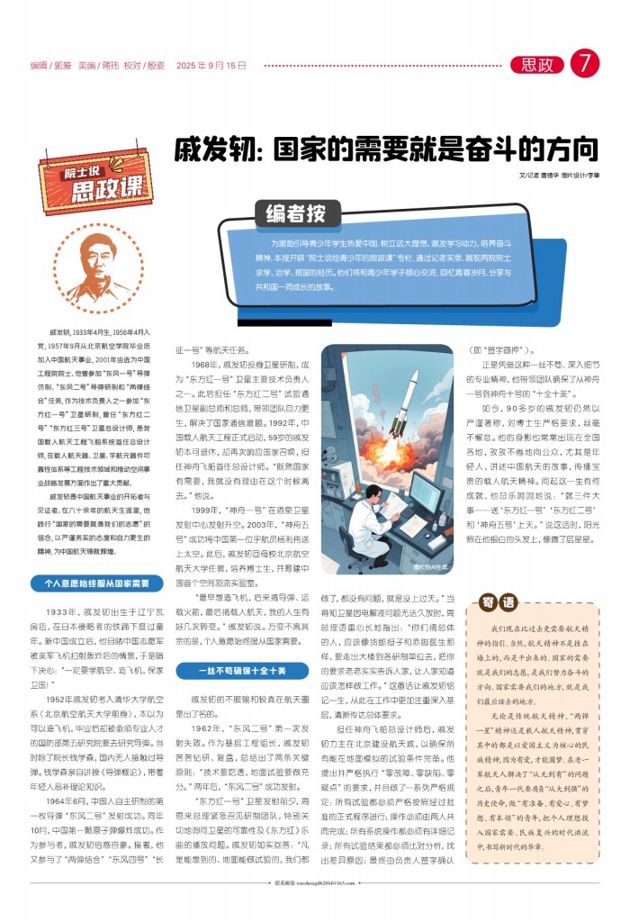 戚发轫:国家的需要就是奋斗的方向