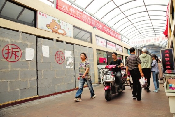 南面为综合市场,主营衣帽服饰、玉器古玩、家居日用,也有游戏厅、裁缝店等。此次要拆除的就是南市场。