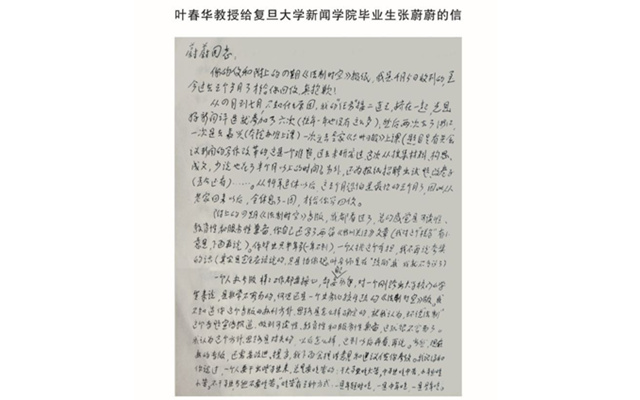 叶春华写给复旦大学新闻学院毕业生张蔚蔚的信。