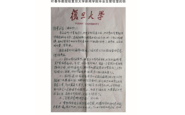 叶春华写给复旦大学新闻学院毕业生管佳莹的信。