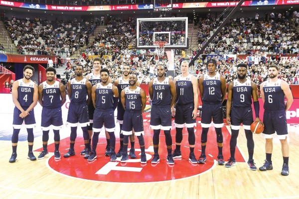 美国队球员在赛前合影。本版均据新华社图