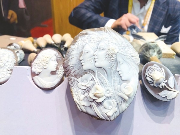 本报讯 在品质生活馆的珠宝专区,同样是一个来自意大利的首饰品牌邀请了几位意大利的贝雕工匠大师,用鬼斧神工的雕刻技艺在贝壳上创作了一幅幅瑰丽的画卷。